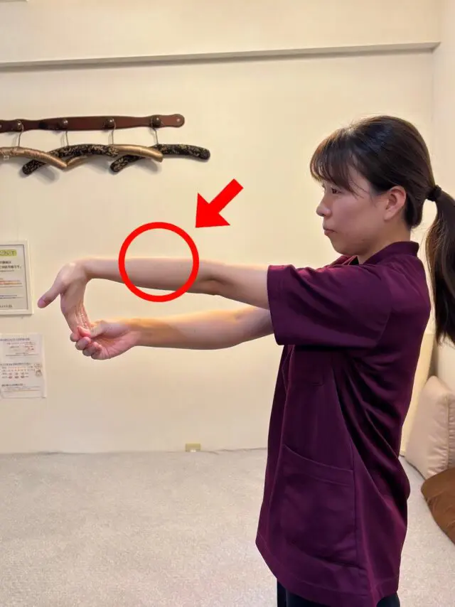 3.手首の内側から肘あたりにかけて、伸びている感覚があればOK!
