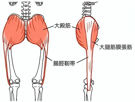 つながっている筋肉(大腿筋膜張筋・大殿筋)が硬くなると、